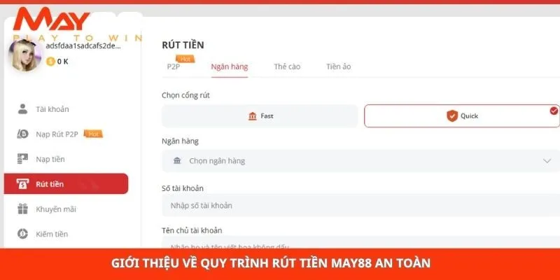 Quy trình thực hiện lệnh rút tiền may88 nhanh nhất